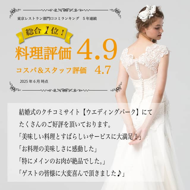 東京都レストラン部門で5年連続 口コミランキング1位を獲得致しました。